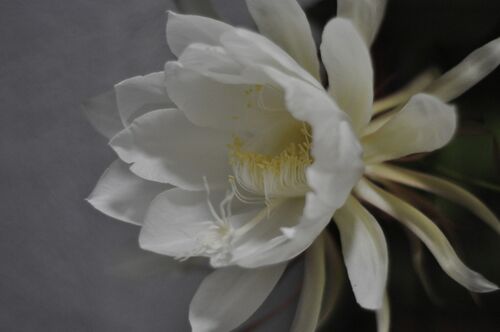 月下美人は一夜花で短命です 咲かせるのは花の咲く時期まで水を絶つことです 夜中の23:48月下美人が咲き朝にはしぼみました