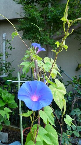このアサガオは植えた覚えがないのに、畑の土から芽を出したのを鉢植えにしたもの 日本のアサガオです。 花の命は早朝の短い時間だけ咲いてしぼんでしまうのです アサガオの花が咲いているうちに撮影 この後30分もするとしぼんでしまいます ドイツへの土産…