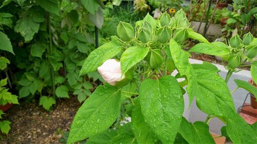 アメリカ芙蓉 雨の合間に散歩に出かける時にアメリカ芙蓉の鉢を見るとつぼみが膨らんでいました 咲いた花が道路から見えるように鉢を回しておきました 明朝に大輪のハイビスカスのような花が咲くことでしょう アメリカ芙蓉に花は朝が一番きれいです 近所の人…