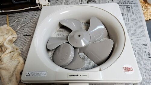 12月30日、換気扇のクリーニング作業 キッチンの換気扇の電源コードを抜き、換気扇の樹脂部分を外し、本体固定ネジを緩めて外し、樹脂部分は台所洗剤で丸洗いしきれいになりました。 換気扇本体は油汚れ落としマジックリンをスプレーしてウエス(ぼろ布…