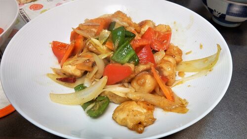 鶏むね肉の甘酢炒め 鶏むね肉の甘酢炒め、野菜を加えアレンジしてみました。 鶏むね肉は、鶏皮や脂肪、血管などを丁寧に取り除いて一口大に切ります 鷹の爪、パプリカ、ピーマン、玉ねぎ、にんじん、ショウガ、白ネギとニンニク ニンジンは薄切り、玉ねぎは…