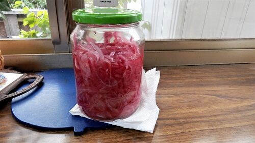 紫玉ねぎの黒酢漬け 紫玉ねぎ漬け 紫玉ねぎの黒酢+リンゴ酢漬け 割合は;紫玉ねぎ1個、黑酢+リンゴ酢 大さじ5、塩一つまみ、ハチミツ大さじ1~2 タマネギは薄く切り空気に15~20分さらしてから広口瓶に調味料と漬け冷蔵庫で3~4日で食べごろになる…