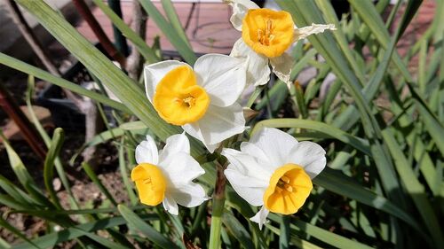 庭の花の写真です 水仙 水仙 八重の水仙 八重の水仙 菜の花 菜の花 ノースポール ノースポール カメリア オキザリス オキザリス