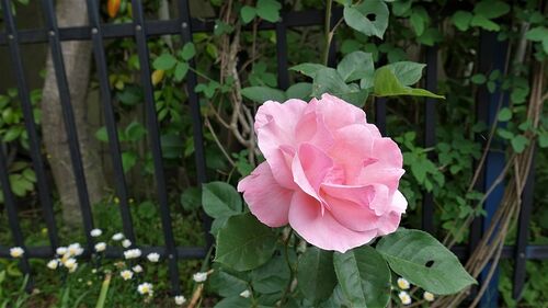 バラが咲いた 玄関わきにバラが咲きました バラが咲きました バラの蕾 ルドべキア ルドべキア ゲラ二ウム アマリリス カーネーション 鉢植えのレンゲバラ ハクチョウツゲ フェンスの白ツルバラ 白ツルバラ 四季咲きナデシコ 五色カズラ
