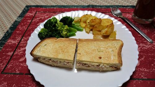 新聞の料理記事に載っていたフライパンでサンドをつくってみました フライパンでサンド タマネギのみじん切りとツナ、マヨネーズ、マスタードを混ぜ合わせたものを、食パンにチーズを敷いた上にぬり、チーズと食パンでサンドしフライパンで押さえるように両…
