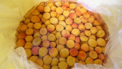 梅干をつくるために塩漬けしている樽の落し蓋の上にのせていた重石を2日前に、落し蓋が浮かない程度の重石に替えておいた。塩漬けの梅の様子を確認する為に、殺菌多袋殺菌多袋を漬け上げてみた所、白梅酢も透明で順調に塩漬け梅が出来ていました。今月末に灰…