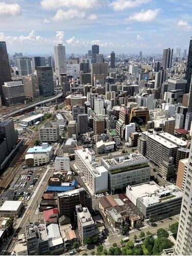 20日にドイツ年金の生存証明にドイツ領事館へ出かけた時の、大阪市内の様子 スカイタワー35階からの大阪市内 スカイタワー35階から西方向の大阪市内 スカイタワーの眼科では梅北造成中、左正面が大阪丸ビル
