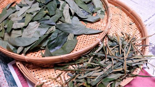 柿の葉茶と銀杏茶の第二弾の作業です 陰干しの柿の葉から葉脈を切り取る 葉脈を切り落とした柿の葉 キッチンばさみで細かくカット 大きな鍋の底に湯を入れ、ザルにガーゼを敷きかくの葉を入れて包み、鍋蓋をして1分蒸しました。 蒸した柿の葉は素早く竹ザル…