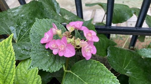 台風1号の影響か?今日は小雨の天気です。咲き始めた紫陽花が小雨に濡れて咲いています。 フェアリーアイ バラ 墨田の花火 お多福紫陽花