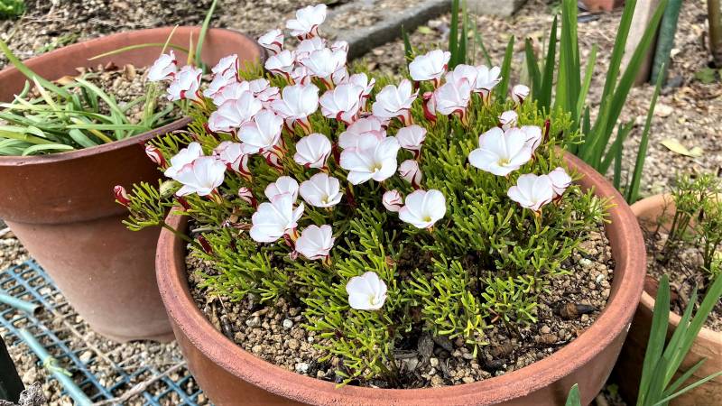 2023-01-04 庭先の花 季節の風景 その他 年賀状を頂いた人に、寒中見舞いを小寒(1月6日頃)から立春(2月3日頃)までで出すことにしており、それぞれに宛名書きと文面をワードで作成しました。印刷するインクジェットの普通ハガキを郵便局で買ってきました。6日以降に投函できるよう準備をしておきます。 鉢植えのオキザリス