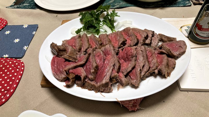 2023-01-21 ローストビーフ 料理 季節の風景 今日は朝から気温が低く、風も冷たかった、スーパーが買い物客で混む前にと、小雪のちらつく中歩いて買い物に行ってきました。 新型コロナウイルスの感染症法上の位置付けを政府は今春から「5類」に引き下げるとの方針を出した様で、実施されるとなると規制が緩和されることになり、生活環境が以前のように成るのか?それともウイズコロナでインフルエンザ並みに共存するのか?懸念はあるがなるようになるであろう。 ローストビーフ サラダ ローストビーフのディナー