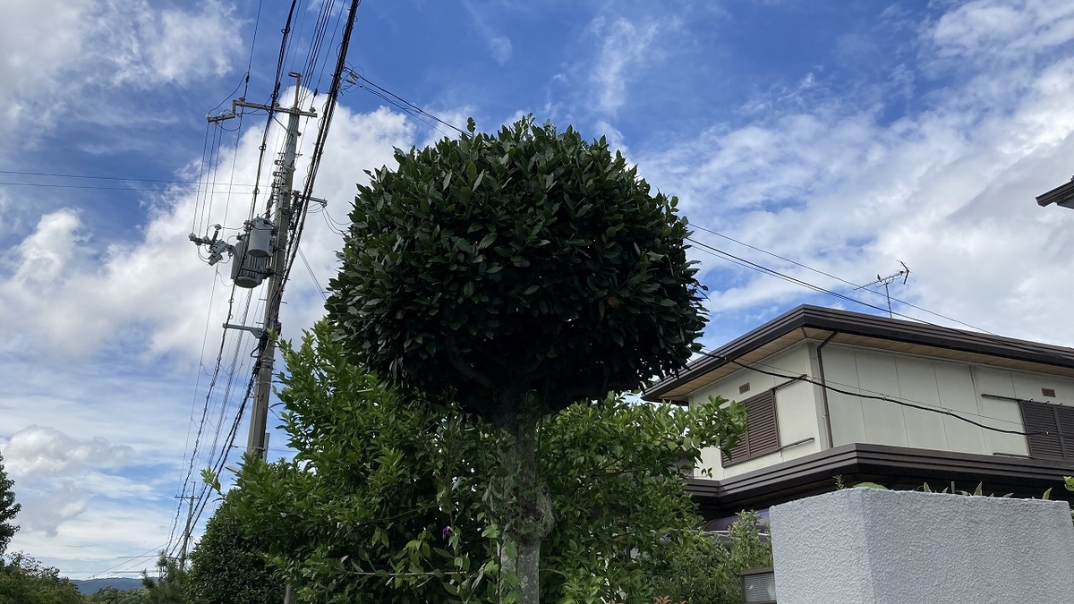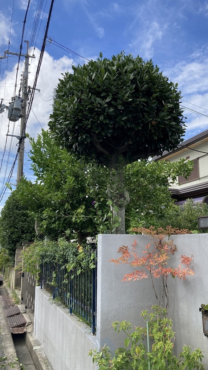 2024-08-30 月桂樹の剪定 季節の風景 庭の月桂樹の枝が伸びていたが、猛暑の為手つかずにしておりましたが、今日は台風10号の影響か気温が低かったので、月桂樹の枝を電動枝切で剪定しました。 伸びた月桂樹の枝 選定後の月桂樹 剪定前の月桂樹 剪定後の月桂樹