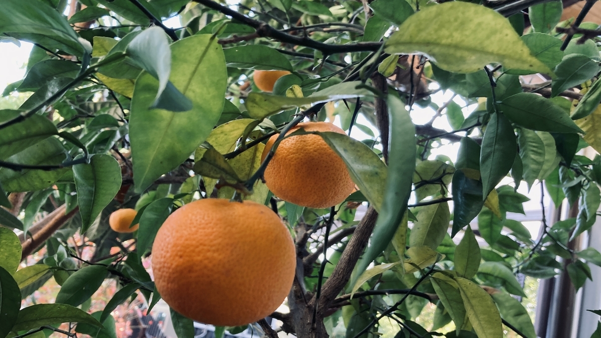 2025-12-22 2025冬至 季節の風景 朝からの冷たい雨が昼過ぎごろから止んで曇り空から晴れになってきました。今日は2025年の冬至、ご近所から柚子風呂用にと柚子を頂きました。 庭のスダチが熟れてオレンジ色になり、まだ残っております